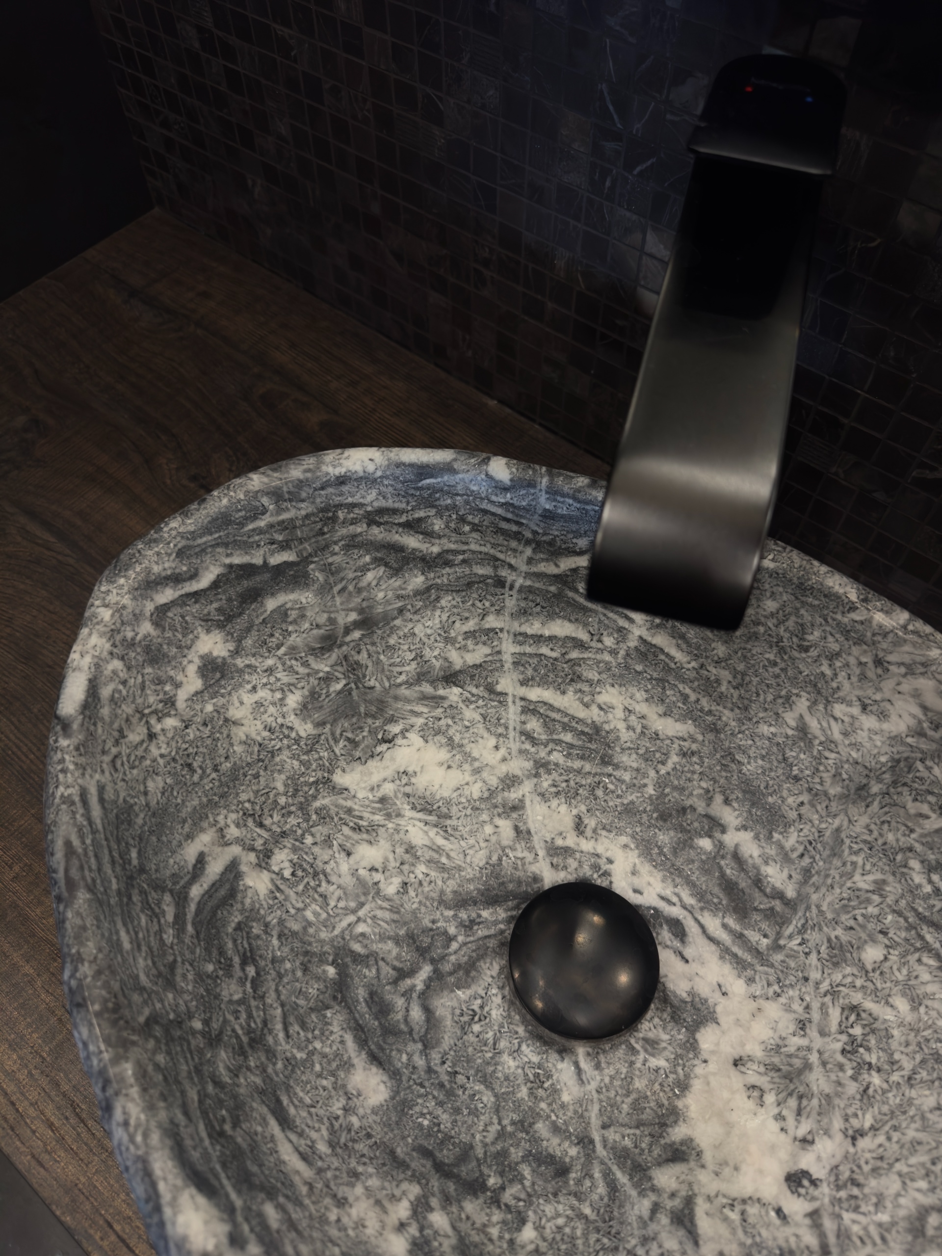 Оникс, мрамор, кварцит — как природная живопись. Используется не как фон, а как арт-объект. Особенно в столешницах, панелях или обрамлении ванн.
